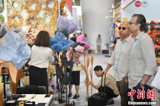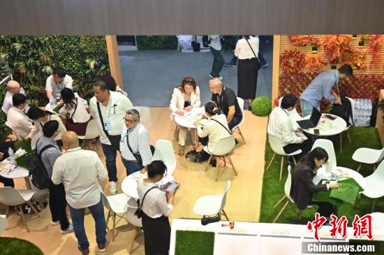 第136屆廣交會(huì)第二期的園林用品展區(qū)吸引采購(gòu)商(右)咨詢(xún)洽談。