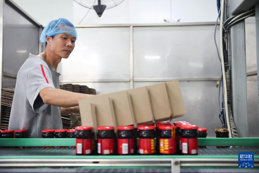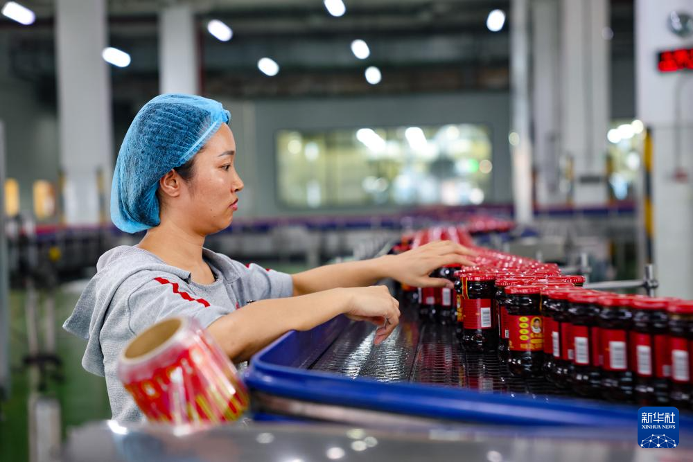 工作人員在老干媽生產(chǎn)線上整理貨品(8月20日攝)。新華社記者 劉續(xù) 攝