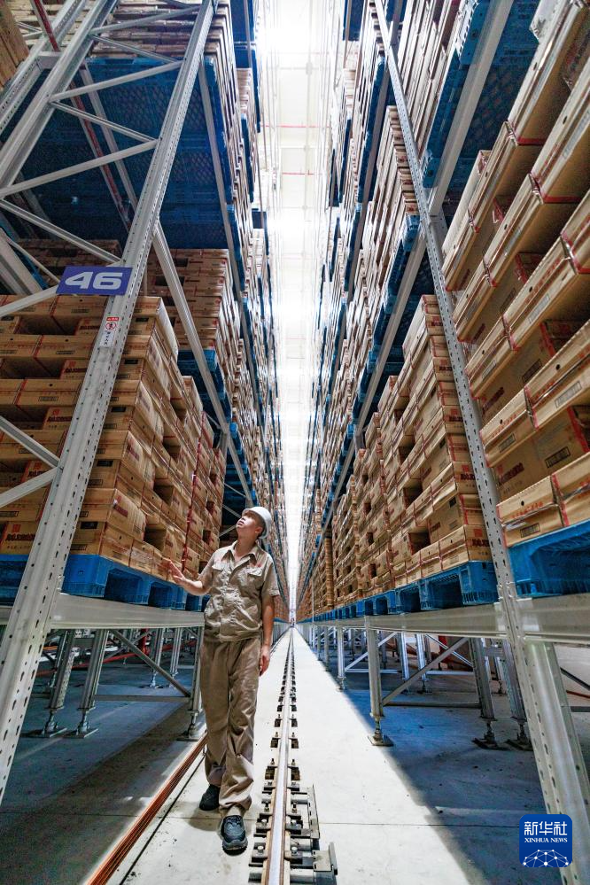 工作人員在老干媽倉(cāng)庫(kù)內(nèi)查看存儲(chǔ)的貨物(8月20日攝)。新華社記者 劉續(xù) 攝