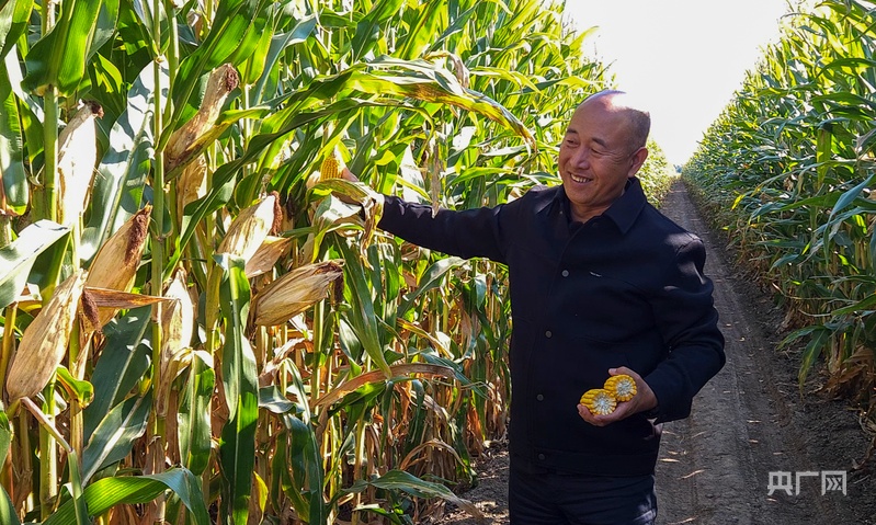 玉米豐收,內蒙古“種糧狀元”馬忠臣喜上眉梢(央廣網見習記者 楊亞東 攝)