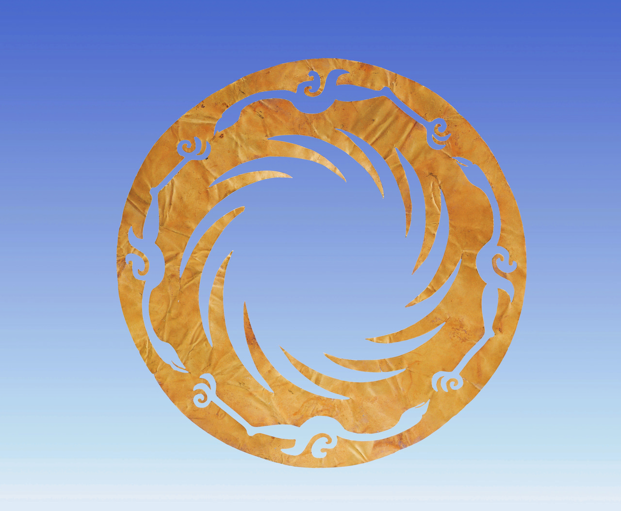太陽神鳥金飾,2001年出土于成都金沙遺址。在金沙遺址發(fā)掘的第18天,考古隊(duì)員進(jìn)行地毯式搜索時(shí),被一塊已經(jīng)揉成團(tuán)的小泥塊吸引,泥塊露出的一角在陽光下異常耀眼。