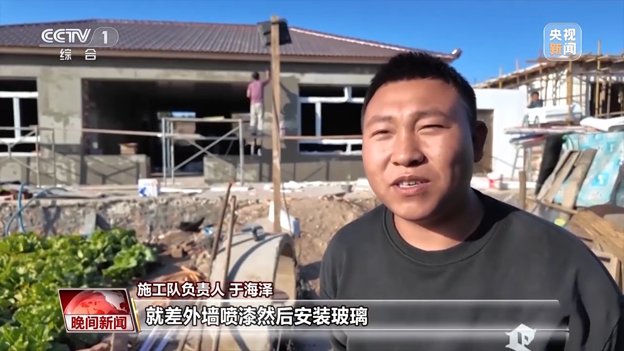 施工隊(duì)負(fù)責(zé)人 于海澤:差不多一天10個(gè)小時(shí),像我們做主體的,忙不過來時(shí)需要加會兒班。這家現(xiàn)在已經(jīng)到了收尾的步驟,就差外墻噴漆然后安裝玻璃了。
