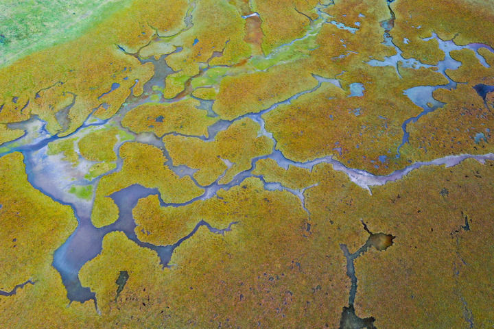 這是2022年9月17日在甘肅省甘南藏族自治州瑪曲縣拍攝的黃河上游重要水源涵養(yǎng)地阿萬(wàn)倉(cāng)濕地內(nèi)的一處沼澤景觀。占地562萬(wàn)畝的瑪曲濕地是世界上保存最完整的濕地之一,被譽(yù)為“黃河之腎”(無(wú)人機(jī)照片)。新華社記者 郎兵兵 攝