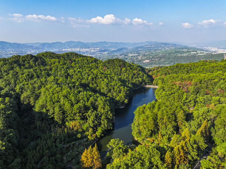 這是2024年10月15日在重慶市北碚區(qū)拍攝的縉云山國(guó)家級(jí)自然保護(hù)區(qū)景象(無(wú)人機(jī)照片)。新華社記者 王全超 攝