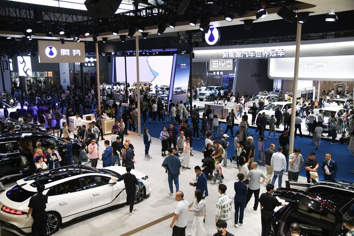 2024年10月1日,參觀者在2024第十九屆西安國(guó)際車展參觀新能源汽車。新華社記者 張博文 攝