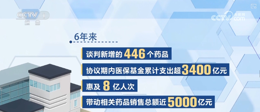 特點(diǎn)三,減輕負(fù)擔(dān)。通過(guò)醫(yī)保的“團(tuán)購(gòu)”,很多“貴族藥”開(kāi)出了“平民價(jià)”。2023年,通過(guò)談判新增進(jìn)入醫(yī)保目錄的105個(gè)藥品,2024年前三季度惠及797.8萬(wàn)人次,9月份藥品銷售額是1月份的七倍。6年來(lái),談判新增的446個(gè)藥品,協(xié)議期內(nèi)醫(yī)?;鹄塾?jì)支出超3400億元,惠及8億人次,帶動(dòng)相關(guān)藥品銷售總額近5000億元。疊加談判降價(jià)和醫(yī)保報(bào)銷等多重因素,累計(jì)為群眾減負(fù)超過(guò)了8000億元。