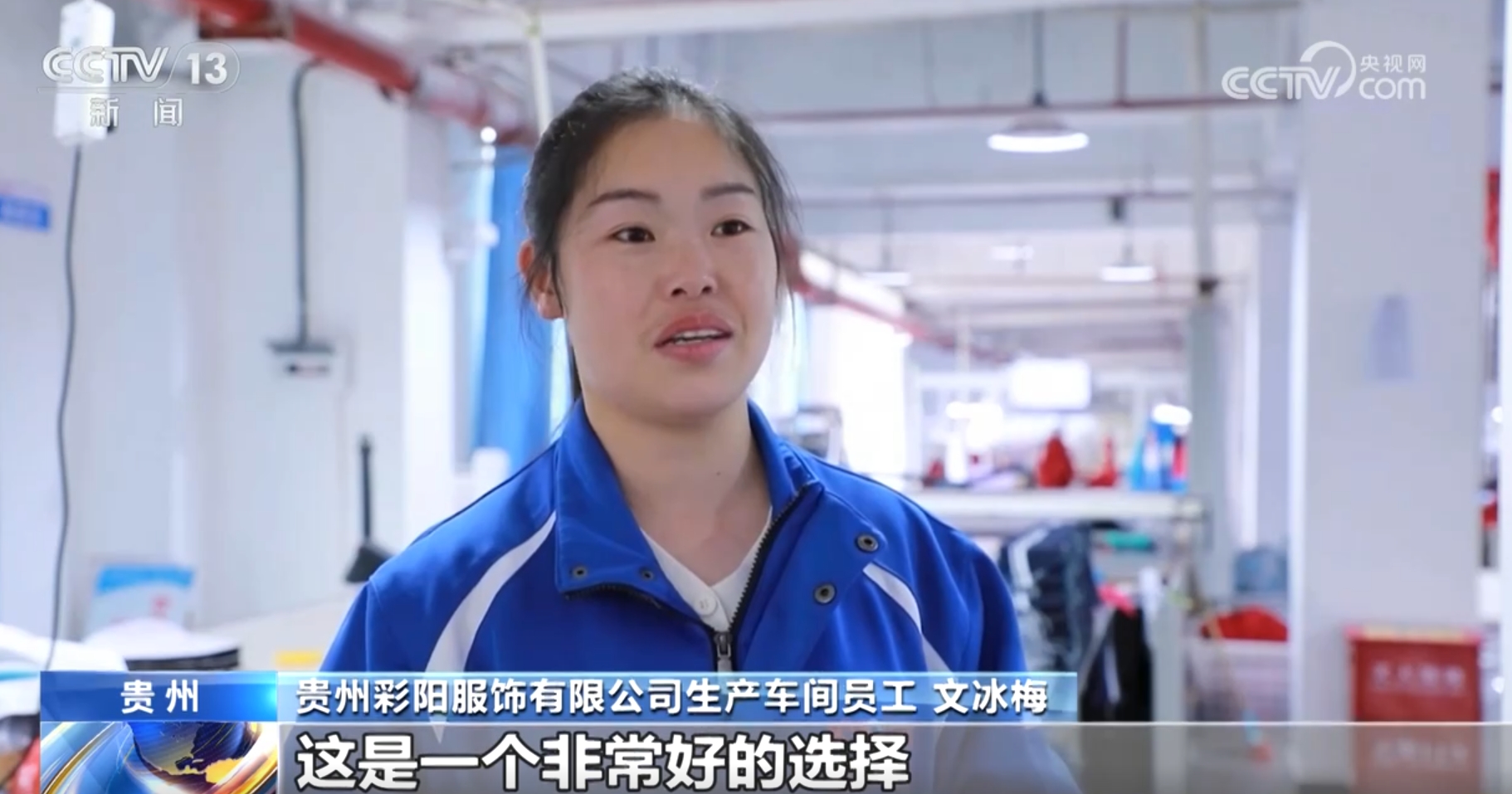 貴州彩陽(yáng)服飾有限公司生產(chǎn)車間員工文冰梅稱:“平均工資四五千元,十幾年都在外面打工,回到家還有一份穩(wěn)定的收入,對(duì)于我們長(zhǎng)期在外面打工的人來說,這是一個(gè)非常好的選擇?!?/p>