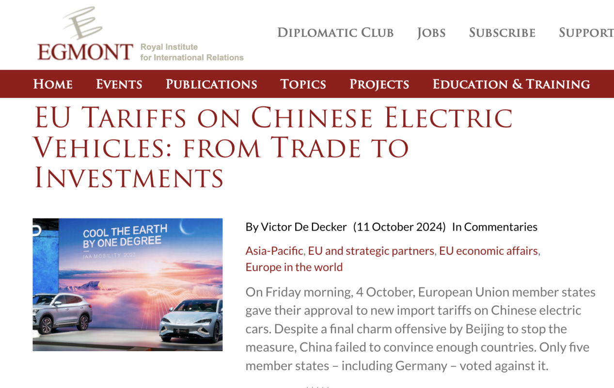 德德克10月11日文章《歐盟對(duì)中國(guó)電動(dòng)汽車(chē)的關(guān)稅:從貿(mào)易到投資》截圖
