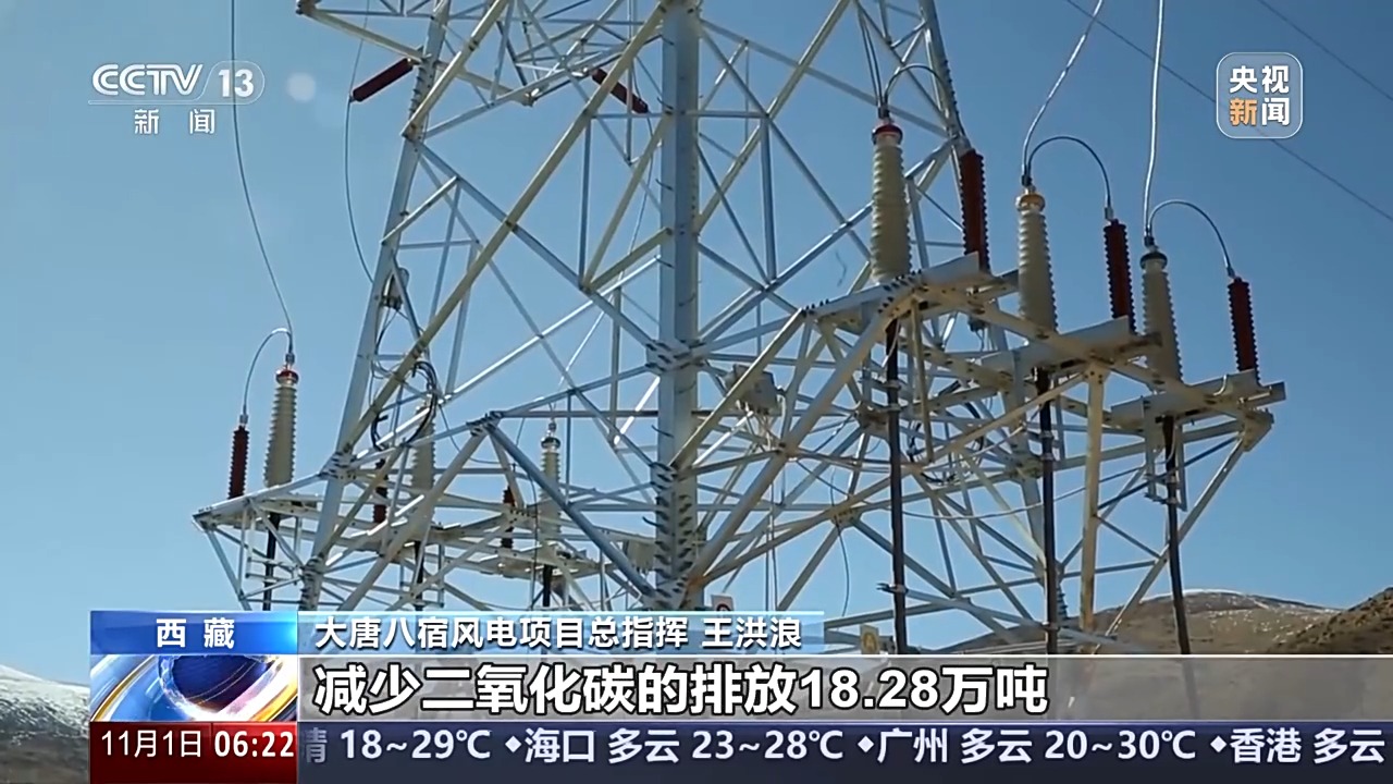 大唐八宿風電項目總指揮 王洪浪:項目投產后每年可以新增清潔電力2.23億度以上,可節(jié)約標(準)煤約7.31萬噸,減少二氧化碳的排放18.28萬噸??梢詽M足23萬人全年生活用電。在保障人民群眾冬季供暖和電力安全供應的同時,可有效地改善西藏自治區(qū)的能源結構。