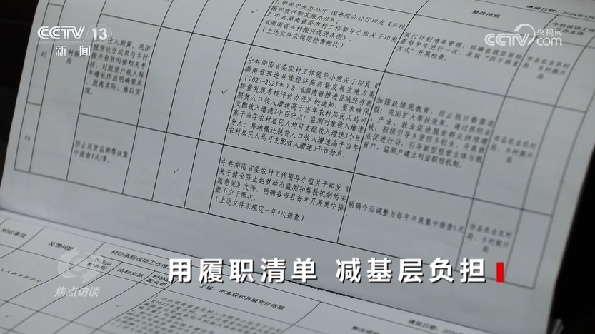 央視網(wǎng)消息(焦點(diǎn)訪談):“上面千條線,底下一根針”,人們經(jīng)常用這句話來(lái)描述鄉(xiāng)鎮(zhèn)干部的基層工作狀況。也有人用“小馬拉大車(chē)”形象地描述基層干部在實(shí)際工作中所面臨的滿負(fù)荷狀態(tài)。為了減輕基層負(fù)擔(dān),2024年8月,中共中央辦公廳、國(guó)務(wù)院辦公廳印發(fā)《整治形式主義為基層減負(fù)若干規(guī)定》,其中明確提出,要規(guī)范明晰基層權(quán)責(zé),建立健全職責(zé)清單。那么,目前基層權(quán)責(zé)明晰做得如何呢?