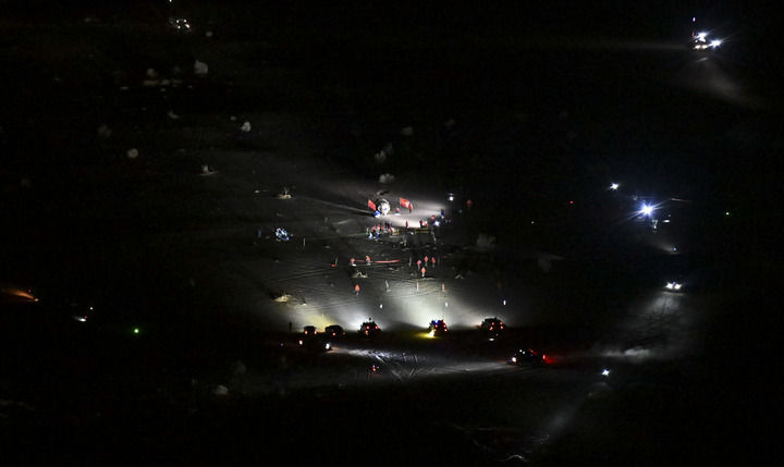 2024年11月4日,神舟十八號載人飛船返回艙在東風著陸場著陸。新華社記者 連振 攝