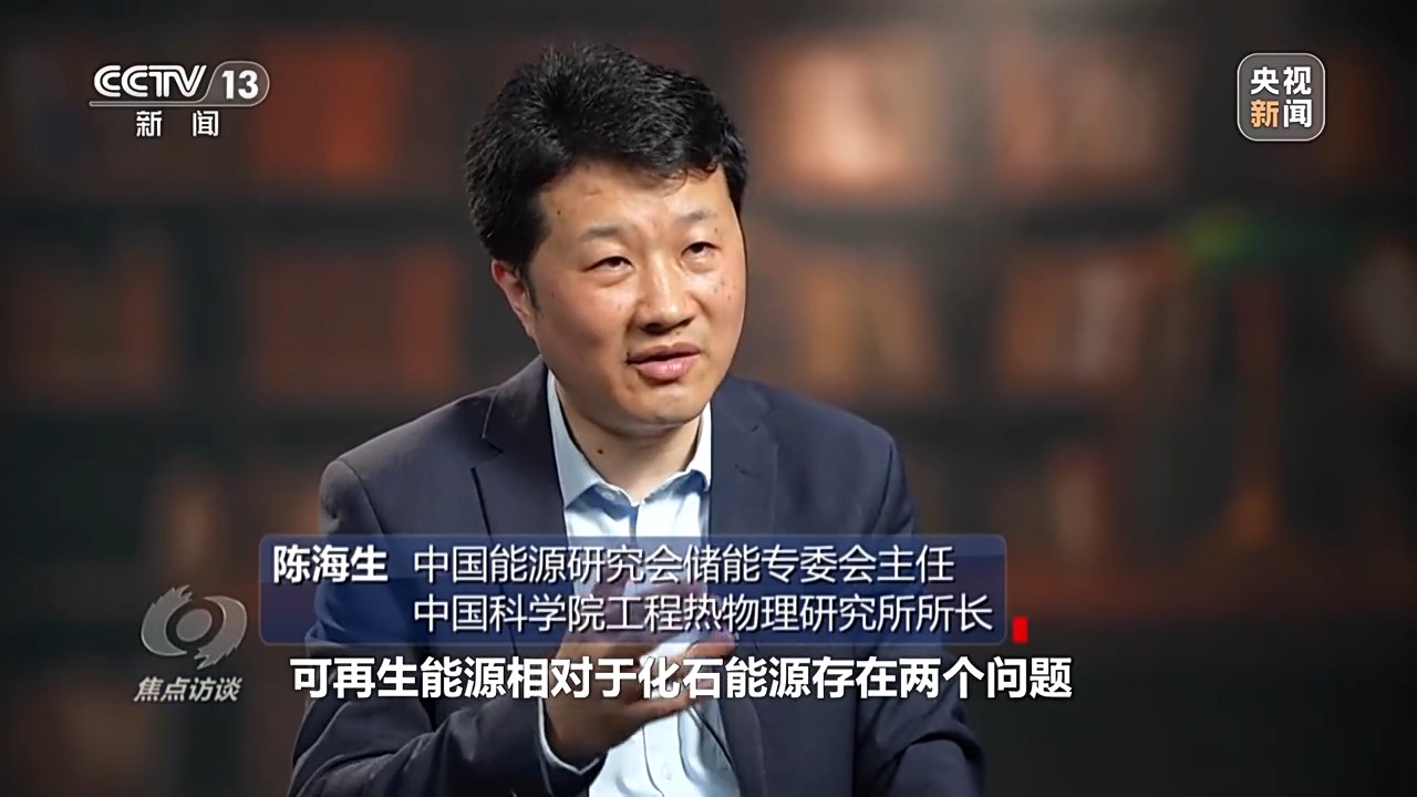 中國能源研究會儲能專委會主任、中科院工程熱物理研究所所長 陳海生:可再生能源相對于化石能源存在兩個問題,一個就是可再生能源的能量密度比較低,比如說風能、太陽能,這就需要轉(zhuǎn)換成更加強有力的能源形式,比如說我們通過風力發(fā)電、光伏發(fā)電轉(zhuǎn)化成電。另外一方面就是可再生能源存在著間歇性、不穩(wěn)定性,就是我們通常所說的靠天吃飯,這就需要儲能,將可再生能源轉(zhuǎn)化成連續(xù)穩(wěn)定的能源,就對新型儲能提出了重大的需求。