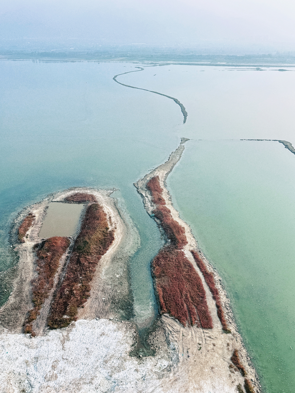 這個(gè)面積約132平方公里的湖泊,位于運(yùn)城盆地的盆底,是山西省最大的湖泊,也是中國最大的硫酸鈉型鹽湖。這里年均降水量497mm,蒸發(fā)量卻高達(dá)2102mm,為降水量的4.2倍,致使湖水不斷濃縮,含鹽量日漸增加,形成鹽湖。