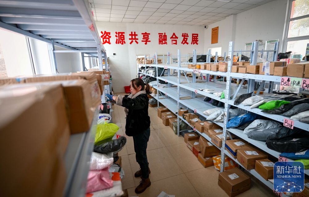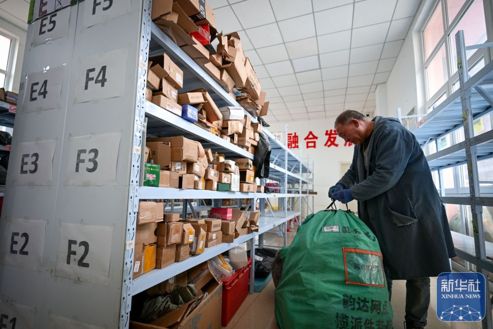 11月10日,隆德縣聯(lián)財(cái)鎮(zhèn)客貨郵商旅綜合便民服務(wù)站工作人員在整理快遞。