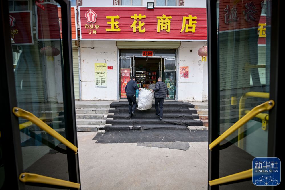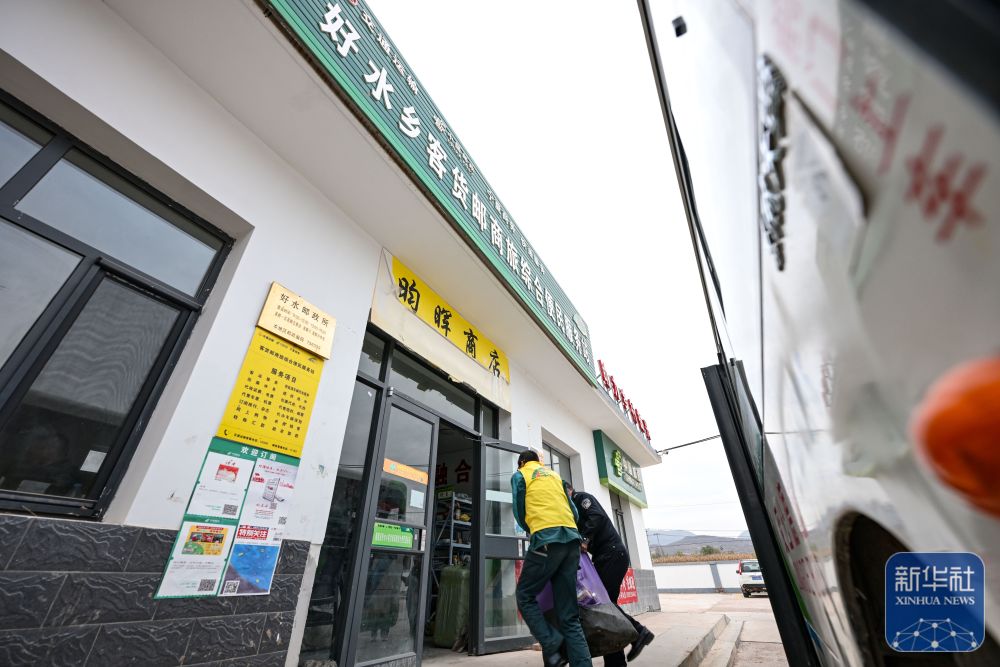 11月9日,隆德縣公交車(chē)司機(jī)和好水鄉(xiāng)客貨郵商旅綜合便民服務(wù)站經(jīng)營(yíng)者從公交車(chē)上卸下快遞物品。