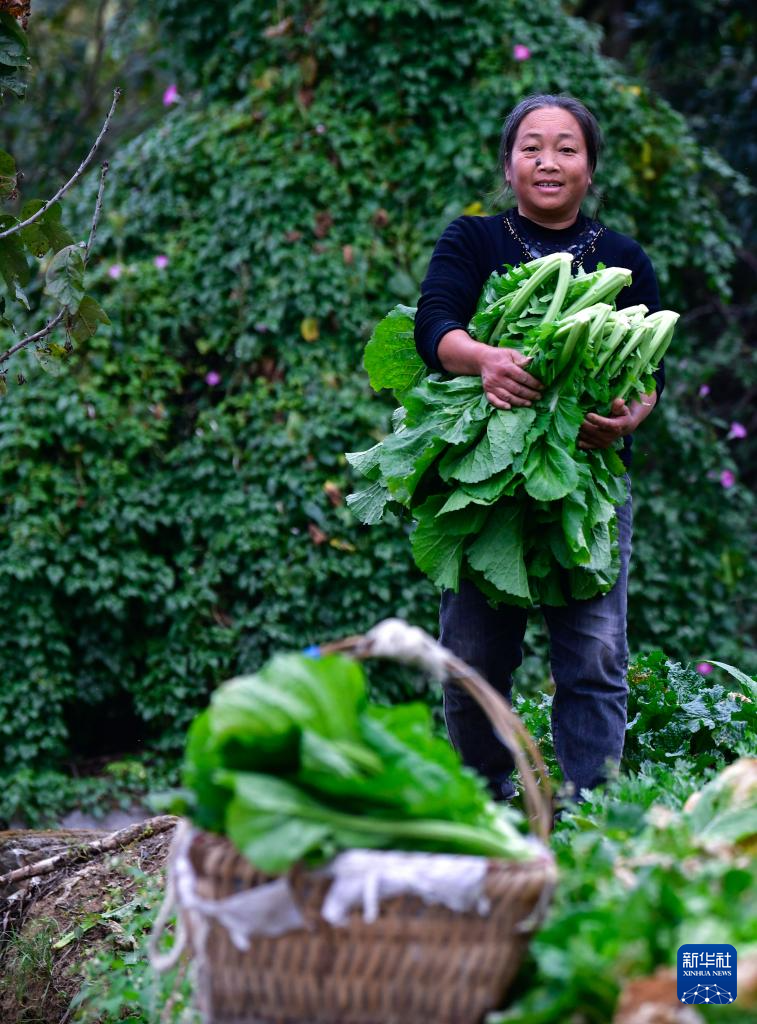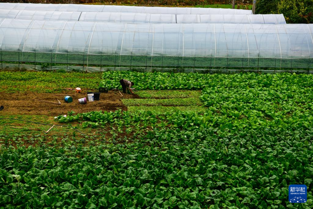貴陽市烏當(dāng)區(qū)下壩鎮(zhèn)下壩村的村民在地里摘菜,準(zhǔn)備第二天進(jìn)城售賣(11月6日攝)。