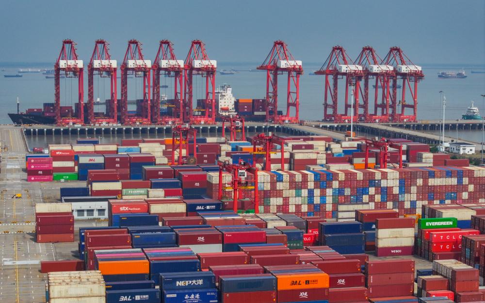 江蘇省蘇州港太倉港區(qū)集裝箱碼頭(無人機照片,10月10日攝)。新華社記者 李博 攝
