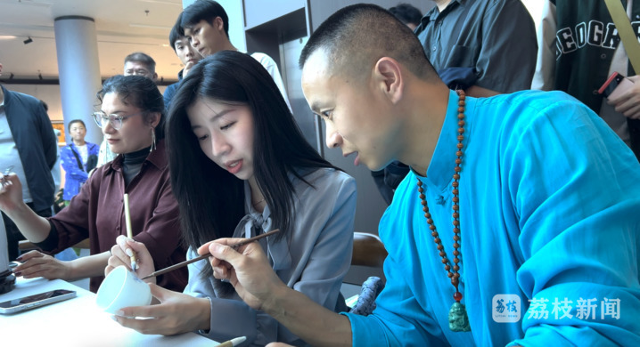 楊慶宜隨老師學(xué)習(xí)瓷畫(huà)創(chuàng)作