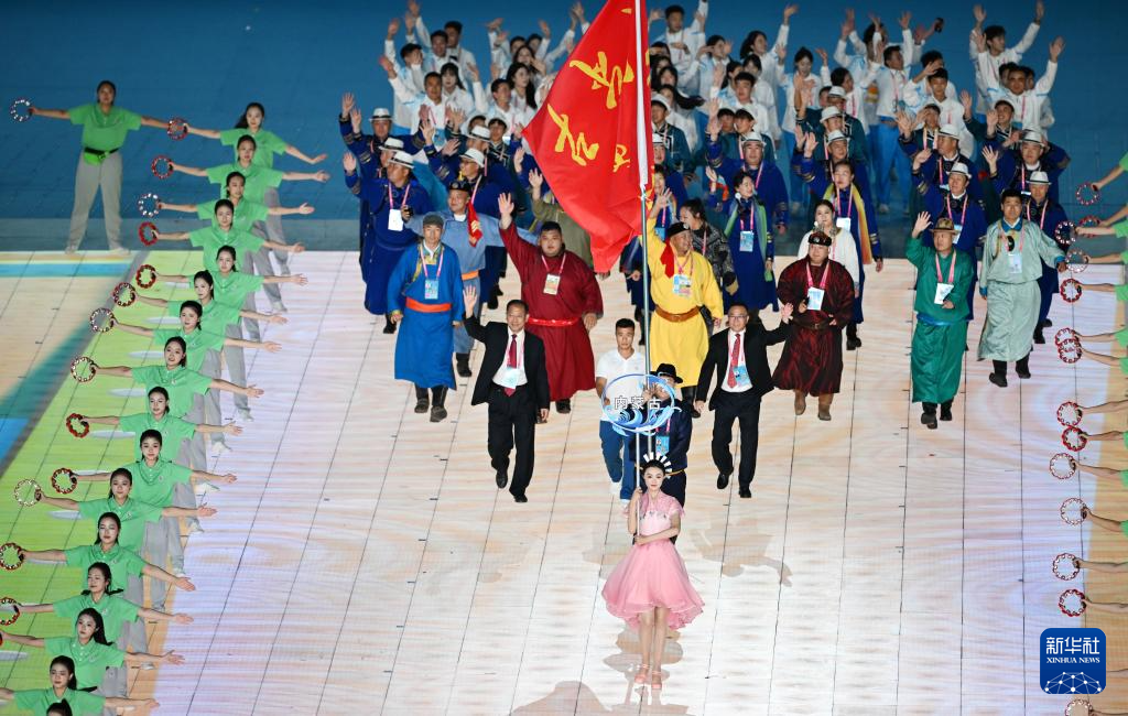 11月22日,內(nèi)蒙古自治區(qū)代表團在開幕式上入場。