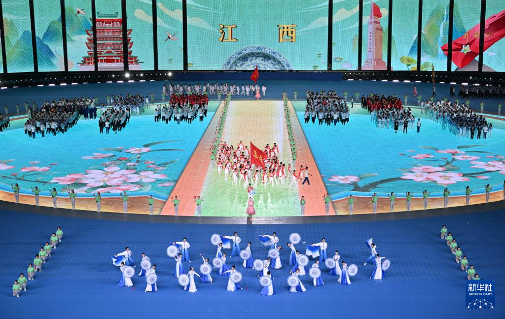 11月22日,江西省代表團在開幕式上入場。