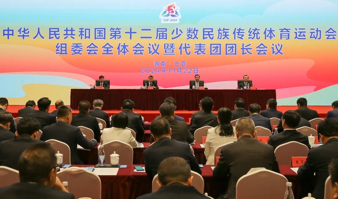 11月22日下午,第十二屆全國(guó)少數(shù)民族傳統(tǒng)體育運(yùn)動(dòng)會(huì)組委會(huì)全體會(huì)議暨代表團(tuán)團(tuán)長(zhǎng)會(huì)議在海南三亞召開(kāi)。民族畫(huà)報(bào)社 盧旭 譚宇杰 攝
