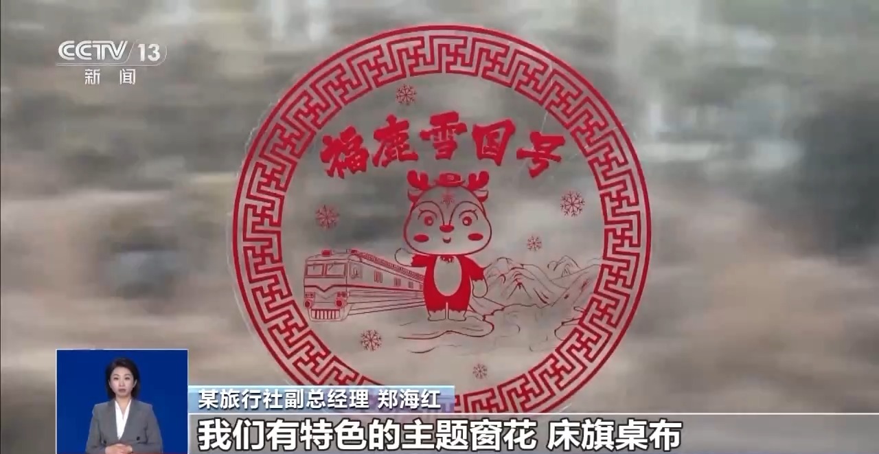 某旅行社副總經(jīng)理 鄭海紅:在列車內(nèi)部做了一個整體裝飾,我們有特色的主題窗花,床旗桌布,讓南方的“小金豆”來到黑龍江,不但能夠賞冰看雪,還能體驗到我們黑龍江獨(dú)有的鄂倫春的非遺,感受冰雪給大家?guī)淼恼鸷场?/p>