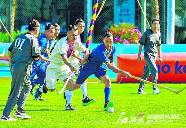 11月24日上午,男子珍珠球第二輪小組賽中山東隊與新疆隊比拼。比賽結(jié)束后,兩隊在場外同喊口號、互贈紀念品;26日,民族大聯(lián)歡文化活動上,全國各地代表團相聚“天涯海角”景區(qū),各族運動員在海邊延展出一條綿長的“民族風(fēng)景線”;27日,新疆代表團在駐地酒店精心籌備了聯(lián)歡會,新疆、湖南、云南、黑龍江等地代表團歡聚一堂,共敘友情。