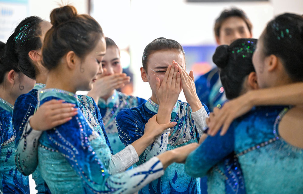 11月28日,河北隊(duì)選手在頒獎(jiǎng)儀式后將過生日的教練樊艷拋向空中慶祝,最終河北隊(duì)獲得自選套路(輕器械)項(xiàng)目二等獎(jiǎng)和規(guī)定套路+自選套路(輕器械)項(xiàng)目三等獎(jiǎng)。