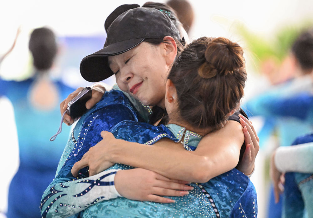 11月28日,上海隊(duì)教練韓春英(中)在成績公布后擁抱隊(duì)員激動(dòng)落淚。最終,上海隊(duì)獲得二等獎(jiǎng)。
