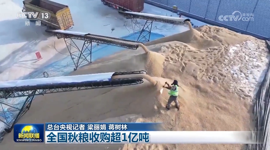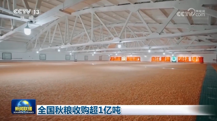 國(guó)家糧食和物資儲(chǔ)備局11月29日最新發(fā)布,截至目前,全國(guó)累計(jì)收購(gòu)秋糧超1億噸,收購(gòu)進(jìn)度快于往年。
