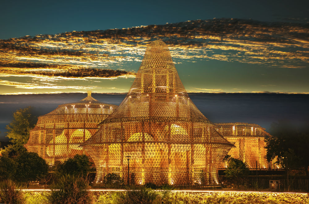 緊接著,設(shè)計師們聯(lián)手用竹子打造了一個充滿設(shè)計感的竹藝村落——龍泉國際竹建筑文創(chuàng)生活村落。