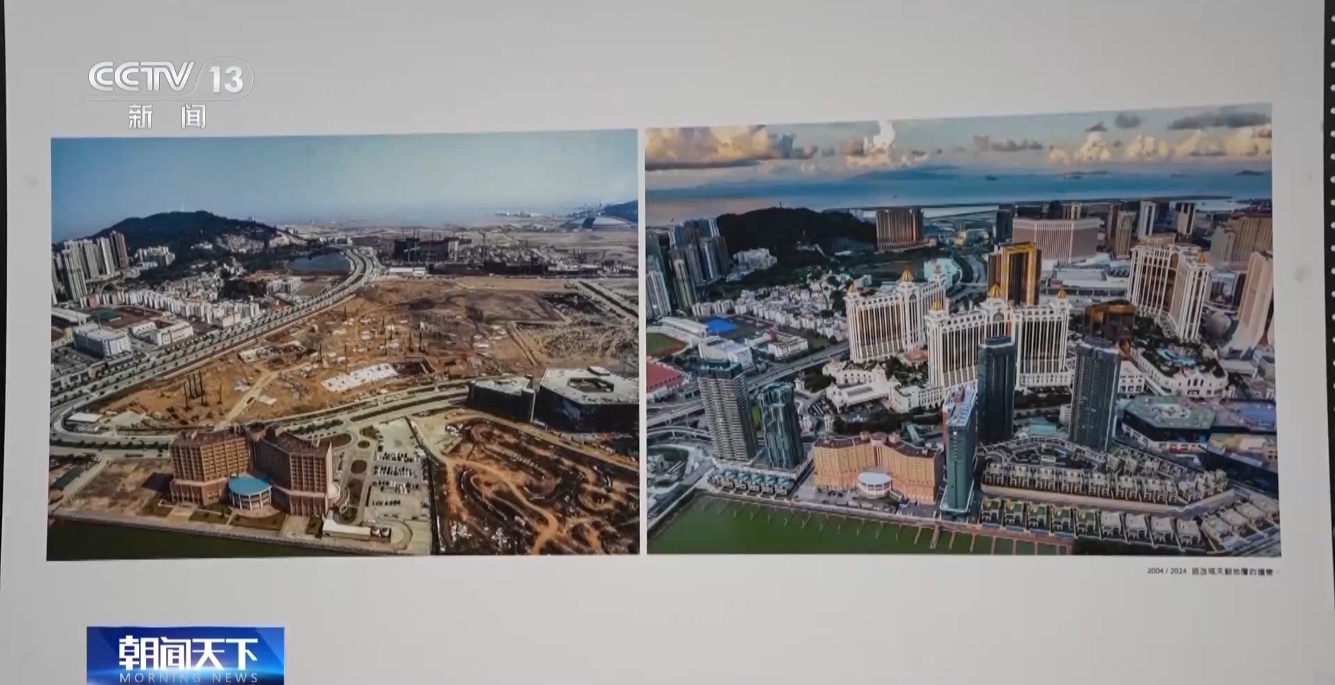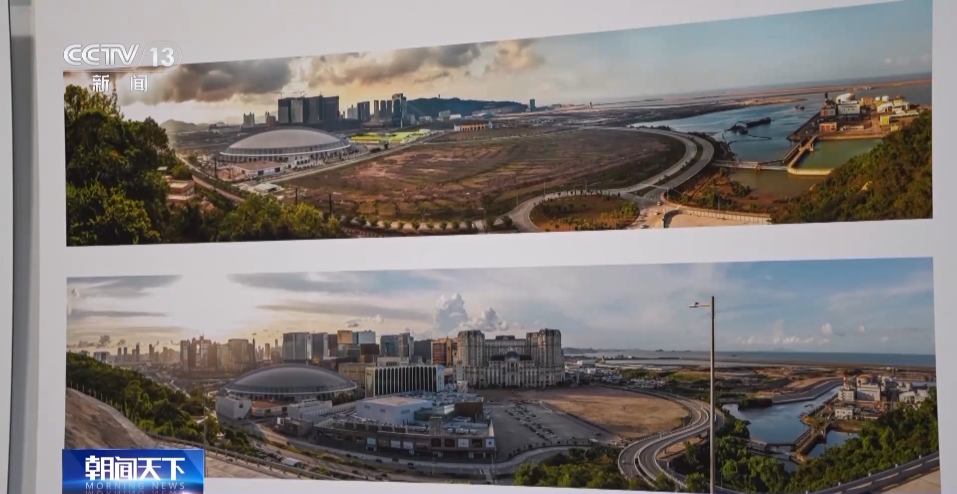 澳門攝影家 陳顯耀:回歸之后,隨著我們澳門的發(fā)展,也是帶動周邊區(qū)域一起發(fā)展繁榮。我們畫面看到的是橫琴,上面的照片是2012年的時候,橫琴都是山體,在準備開發(fā)了。下面是成立的橫琴粵澳深度合作區(qū),整個橫琴的建設(shè)也為我們澳門的發(fā)展建設(shè)提供了一個很重要的支撐、保障。