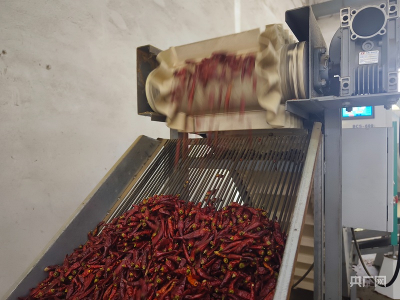 生產(chǎn)車間內(nèi)辣椒正在進(jìn)行機械化處理(央廣網(wǎng)記者 欒小琳 攝)