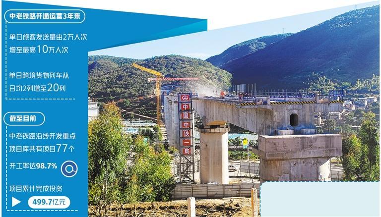 3年來,云南省搶抓中老鐵路機遇,以通道能力提升、物流樞紐建設、沿線產(chǎn)業(yè)開發(fā)和經(jīng)營主體培育為重點,切實打造一條開放發(fā)展的黃金道路。截至目前,中老鐵路沿線開發(fā)重點項目庫共有項目77個,開工率達98.7%,項目累計完成投資499.7億元,投資完成率超66.7%,對促進中老鐵路沿線開發(fā)發(fā)揮了重要作用。