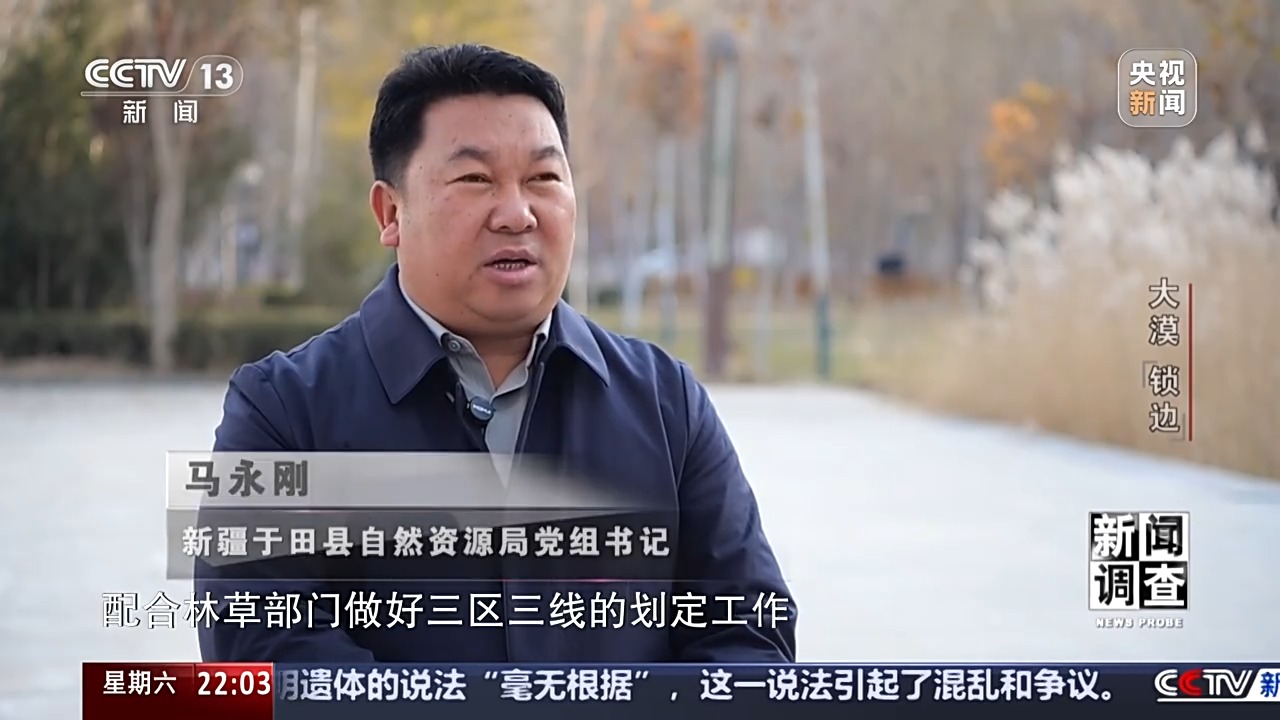 新疆于田縣自然資源局黨組書記 馬永剛:于田縣自然資源局在塔克拉瑪干阻擊戰(zhàn)承擔(dān)的就是項(xiàng)目的選址預(yù)審,配合林草部門做好三區(qū)三線的劃定工作,三線主要審核了在我們的塔克拉瑪干防沙治沙范圍內(nèi)是否占用了基本農(nóng)田,是否占用了生態(tài)紅線,是否存在有礦產(chǎn)壓覆的現(xiàn)象,是否存在一些相關(guān)的土地糾紛問題,進(jìn)行嚴(yán)格復(fù)核,并由林草、水利等相關(guān)部門同步出具相關(guān)的意見。