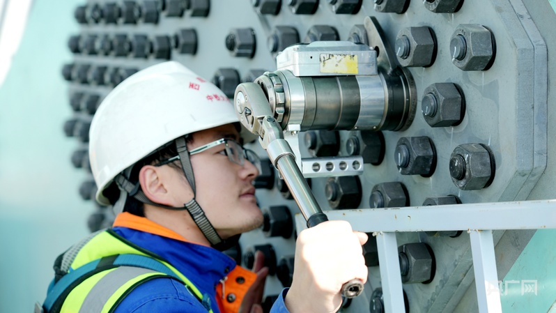 何映正在檢測螺栓扭矩(央廣網(wǎng)記者 汪曉青 攝)