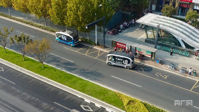 運行中的無人小巴車(央廣網(wǎng)記者 王紀民 攝)