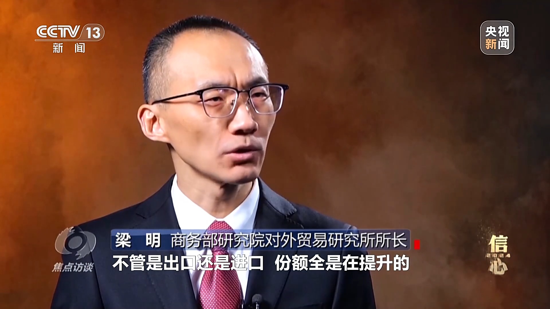 商務(wù)部研究院對外貿(mào)易研究所所長 梁明:“今年前三月,中國出口同比增速4.7%。前11月,增速達(dá)到了6.7%,在逐漸回穩(wěn)向好。不管是出口還是進(jìn)口,份額全是在提升的,顯示了中國貿(mào)易在全球中的地位進(jìn)一步凸顯,貿(mào)易的質(zhì)量,還有貿(mào)易的結(jié)構(gòu)在逐步優(yōu)化。”