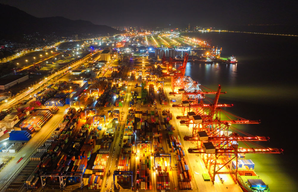 當(dāng)日,夜幕下的江蘇連云港港集裝箱碼頭燈火明亮,工作人員繁忙有序地進(jìn)行裝卸工作。臨近年末,江蘇連云港港持續(xù)提升港口集疏運(yùn)水平,多措并舉加快貨物裝卸轉(zhuǎn)運(yùn)效率,力爭(zhēng)外貿(mào)集裝箱吞吐量與出口量再創(chuàng)新高。