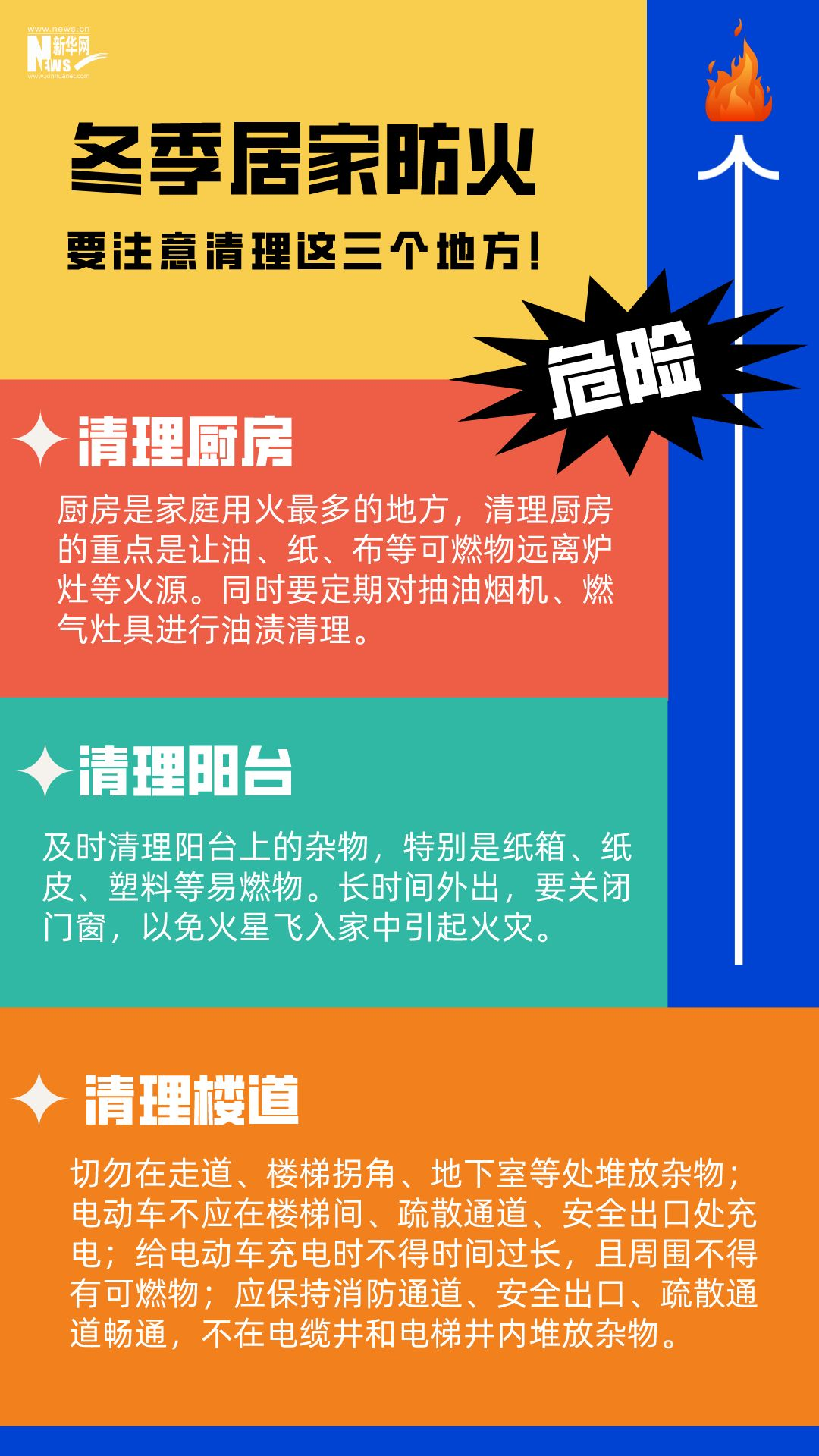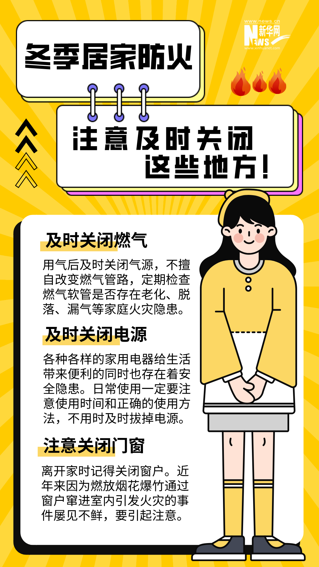 男子在家中用火盆取暖時,不慎引燃身上衣物;女子在電暖器上晾衣服引發(fā)火災;母子二人因在家中燒煤取暖、通風不暢導致一氧化碳中毒......冬季天氣寒冷干燥,晝夜溫差大,生活用火、用氣、用電增加。若疏忽大意,極易引發(fā)火災。安全過冬,居家防火這些細節(jié)要注意。