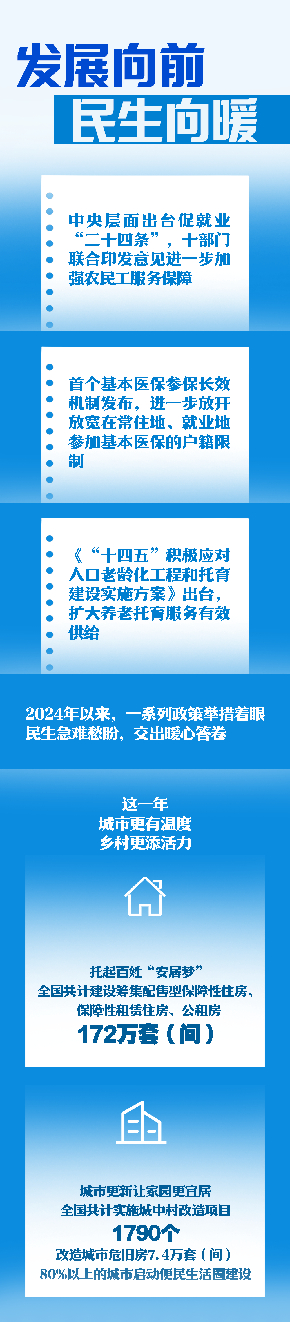 2024年以來,從中央層面出臺(tái)促就業(yè)“二十四條”,到首個(gè)基本醫(yī)保參保長(zhǎng)效機(jī)制發(fā)布,再到聚焦“一老一小”領(lǐng)域擴(kuò)大養(yǎng)老托育服務(wù)有效供給,一系列政策舉措著眼民生急難愁盼,書寫暖心答卷。