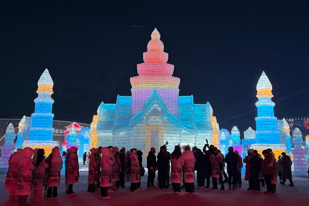 我國東北地區(qū)的冷與東南亞地區(qū)的熱,形成鮮明對比,吸引外國游客“一路北上”。在哈爾濱冰雪大世界,一座用冰復(fù)刻的“大皇宮”高21.5米,受到游客歡迎。“‘冰皇宮’晶瑩剔透,燈光下流光溢彩,太夢幻了!”泰國游客金金說。