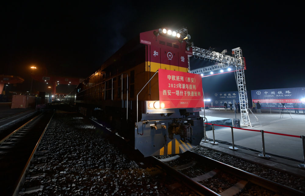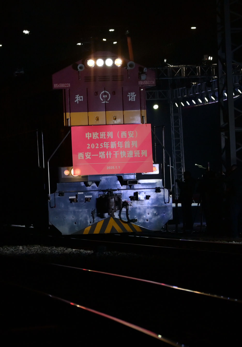 2025年1月1日0時(shí),伴隨著汽笛長(zhǎng)鳴,滿載著白色家電、紡織品和化工品等貨物共計(jì)50個(gè)集裝箱的中歐班列(西安)駛出西安國(guó)際港站,一路向西駛往烏茲別克斯坦首都塔什干。