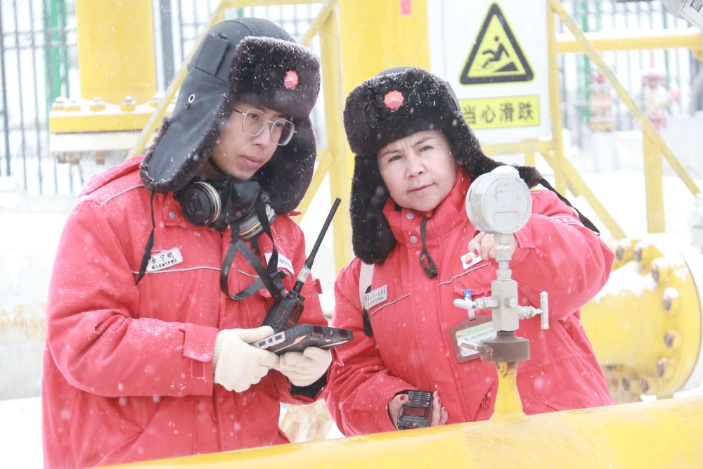 2024年12月9日,塔里木油田員工正在排查場站內(nèi)設(shè)備運(yùn)行情況。(黃偉 攝)