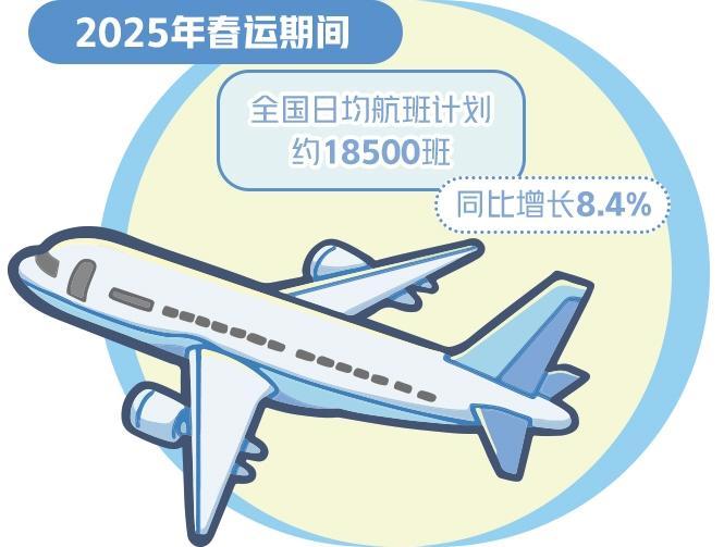 據(jù)介紹,2025年春運期間,全國日均航班計劃約18500班,同比增長8.4%。在主要國際樞紐機場中,北京兩場航班計劃量增幅在5%以上,上海兩場、成都兩場航班計劃量也有一定增長。三亞、??凇⒐枮I、烏魯木齊等“避寒游”“冰雪游”熱門文旅目的地機場航班計劃量預計增長明顯。