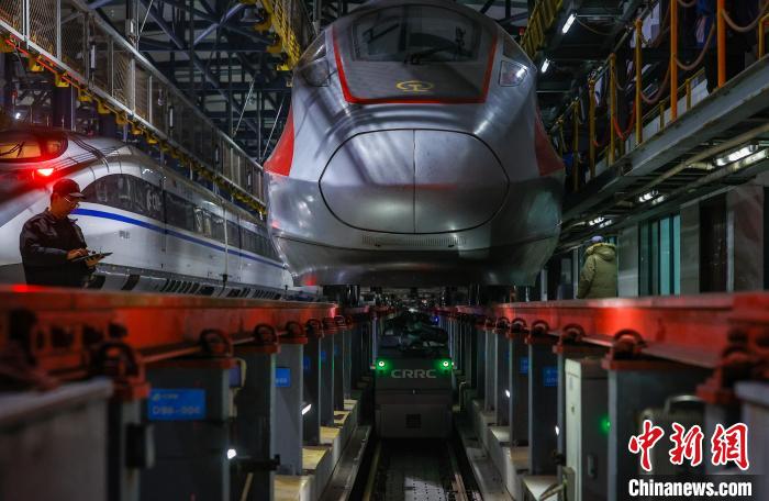 春運(yùn)即將啟幕,1月13日晚11時(shí)許,走進(jìn)華中最大動(dòng)車(chē)檢修基地——武漢動(dòng)車(chē)段,武漢動(dòng)車(chē)運(yùn)用車(chē)間里燈火通明,伴隨鳴笛聲和通風(fēng)機(jī)轟隆隆的聲音,一列列動(dòng)車(chē)或緩緩駛?cè)霗z修庫(kù),或停留在軌道進(jìn)行檢修。
