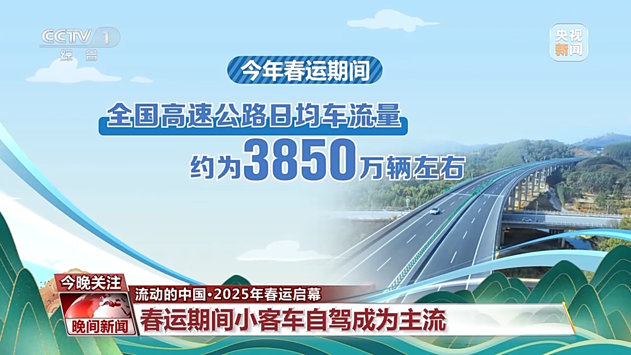 公路方面,春運(yùn)期間舉家返鄉(xiāng)出行多,今年春運(yùn)期間全國(guó)高速公路日均車流量約為3850萬(wàn)輛左右。長(zhǎng)途和中短途出行交織,出行目的地多樣化,小客車自駕成為主流,其中新能源車輛持續(xù)增長(zhǎng)。