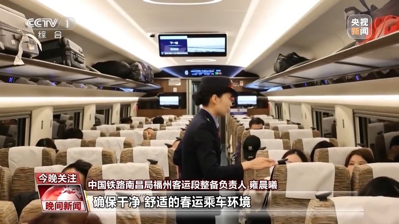 中國(guó)鐵路南昌局福州客運(yùn)段整備負(fù)責(zé)人 雍晨曦:今年春運(yùn),客流高峰日預(yù)計(jì)出現(xiàn)在正月初八。為此,我們準(zhǔn)備了25萬(wàn)余件高溫熨燙消毒臥具和頭靠巾,增配了23萬(wàn)余件滿足旅途需求的衛(wèi)生紙等消耗品,確保干凈、舒適的春運(yùn)乘車環(huán)境。