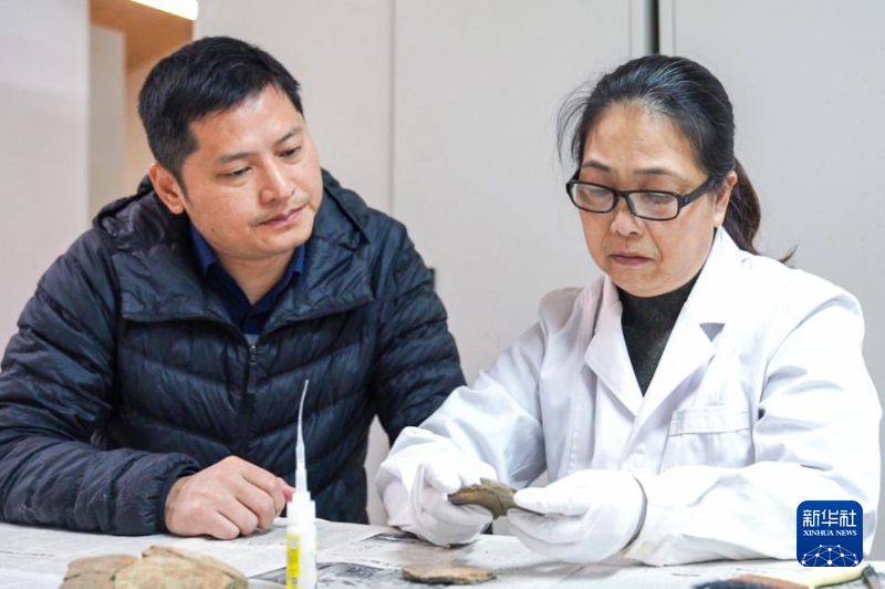 許桂榮在文物修復室了解文物修復過程。新華網(wǎng) 肖和勇 攝