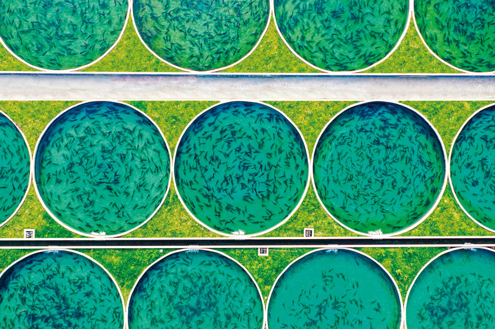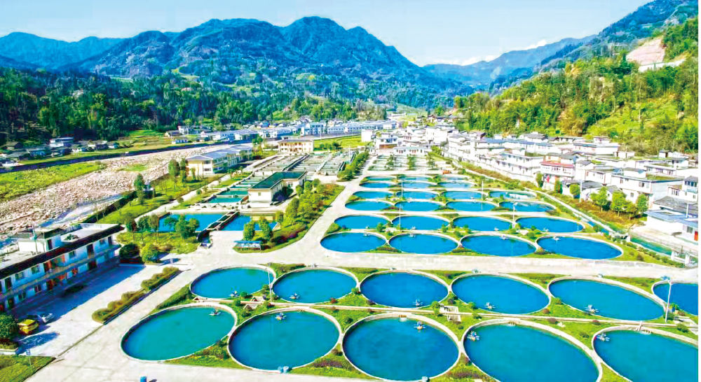 在四川省天全水產(chǎn)現(xiàn)代農(nóng)業(yè)園內,上百個圓形流水魚池依河而建。圖片由天全縣委宣傳部提供。